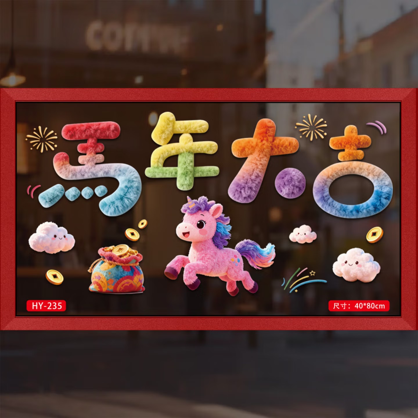 • 商品名称:曦米 HY235 新年装饰窗花橱窗布置贴 静电窗贴 5D马年-E款