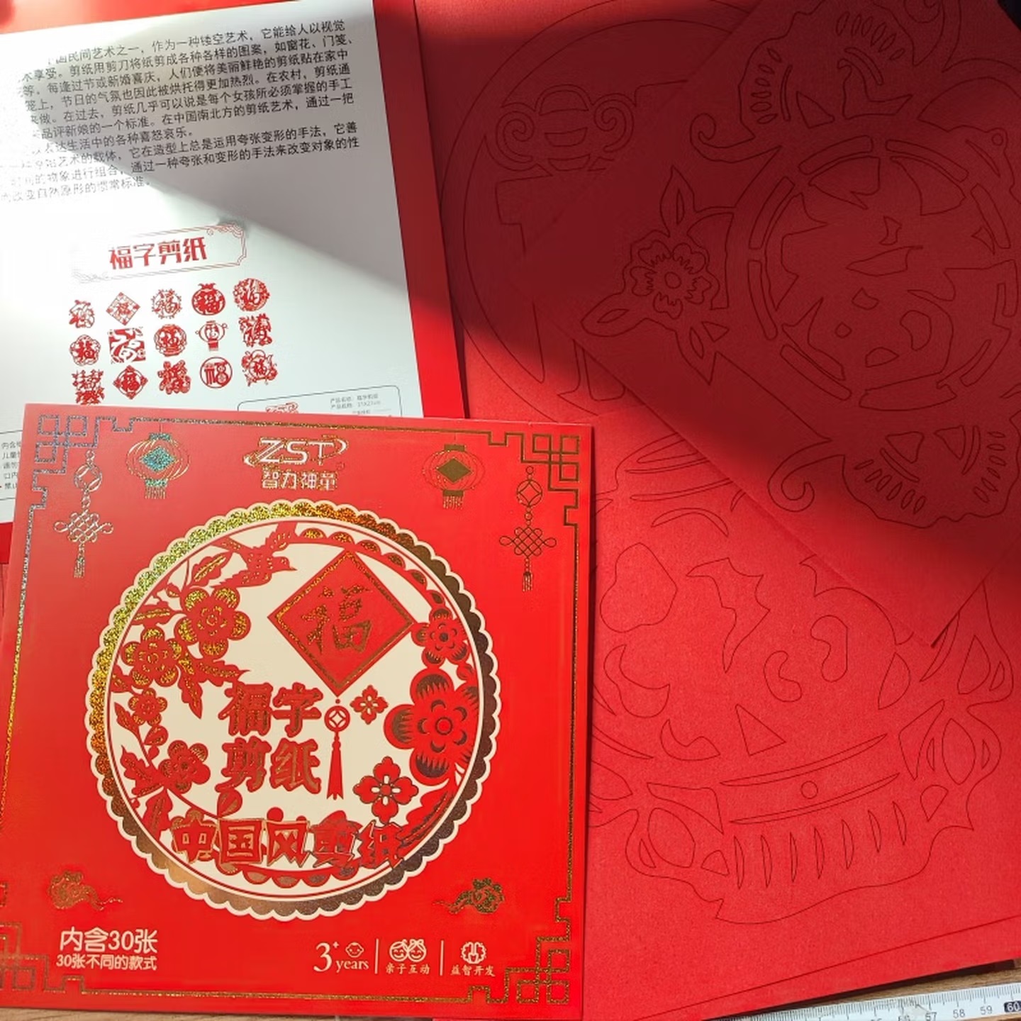 • 商品名称:神童 7242 新年福卡宣纸红纸手工纸 福字剪纸 30张装