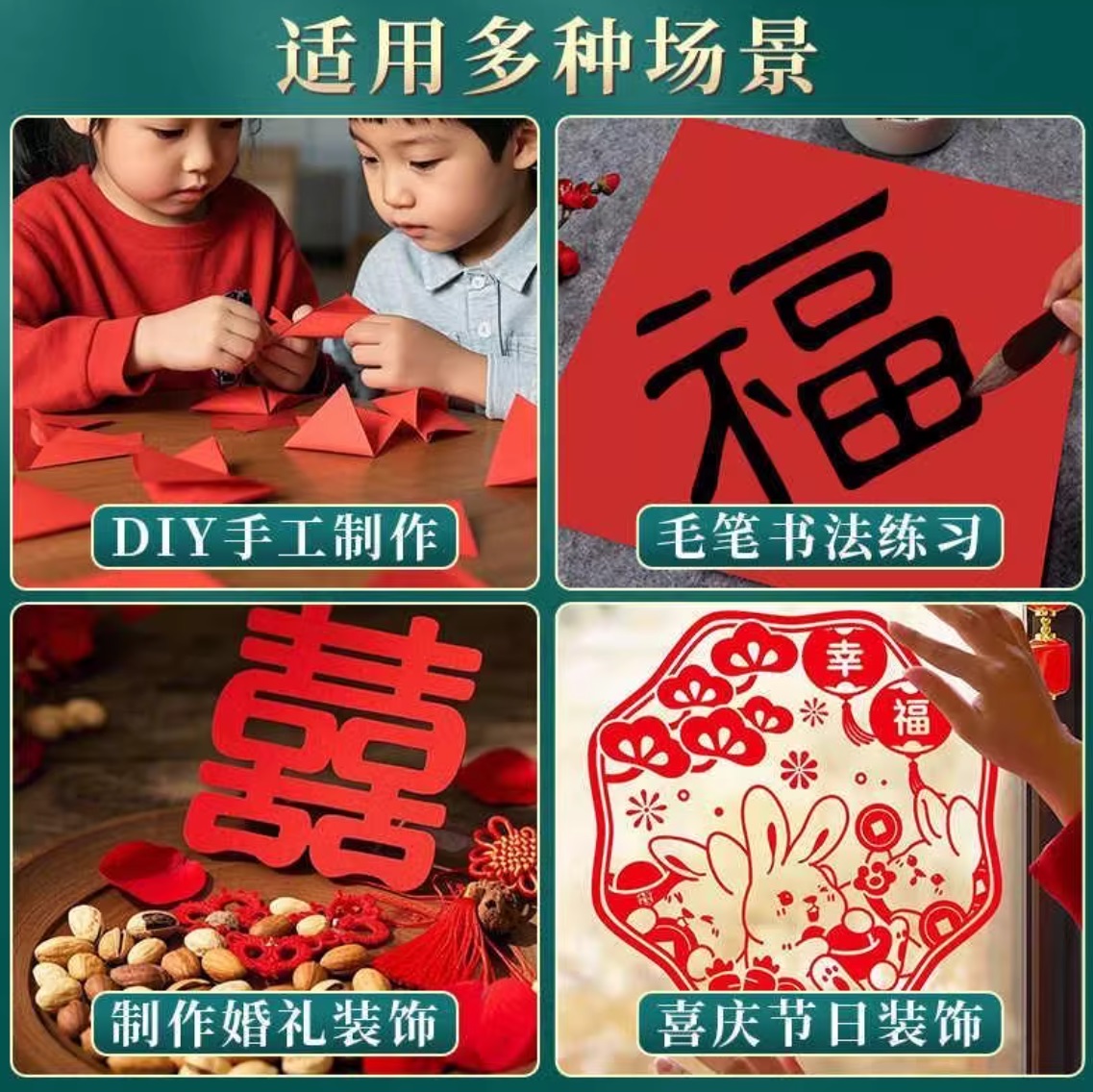 会议展示 年会庆典 龙啸 0301 新年福卡宣纸红纸手工纸 A4大红剪纸 30张装...