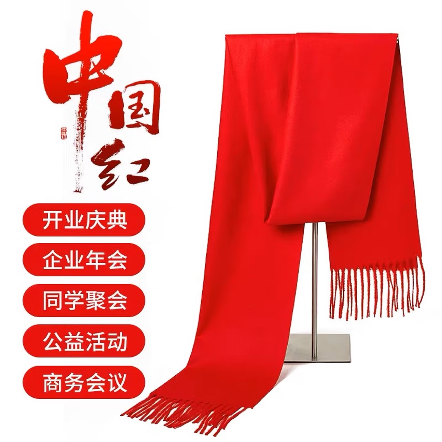 会议展示 年会庆典 美泽明HX63新年庆典年会流苏中国红 仿羊绒围巾 标宽 35cm×180cm...