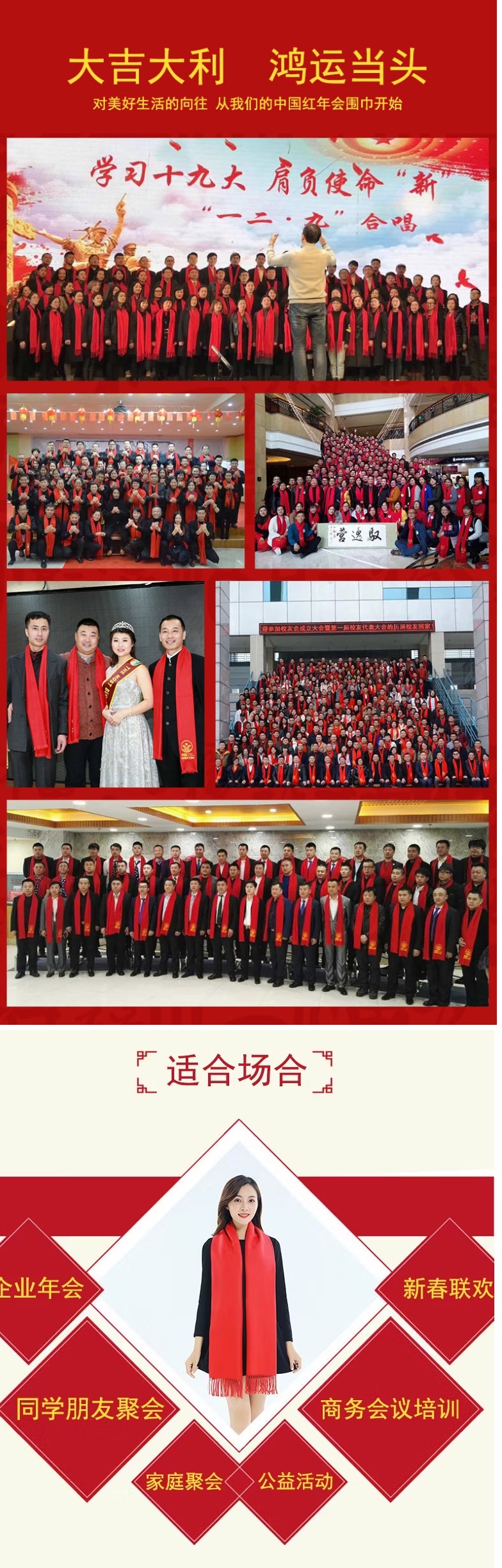 • 商品名称:美泽明HX63新年庆典年会流苏中国红 仿羊绒围巾 标宽 35cm×180cm