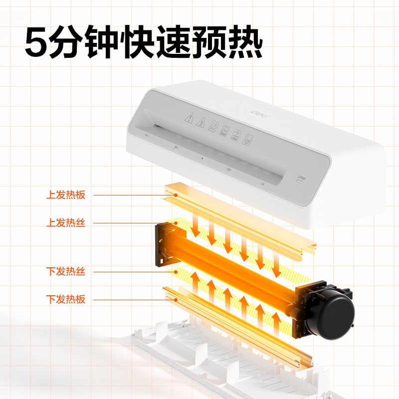• 商品名称:得力 GQ4050 快速预热 时尚简约 A4 塑封机 过塑机