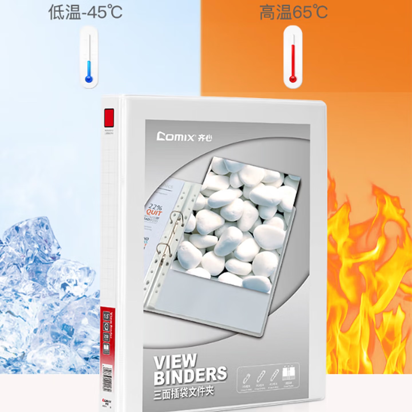 文件管理 快劳夹 齐心 A0237 三面可插袋 文件夹 A4 4.0寸 2孔D型夹...