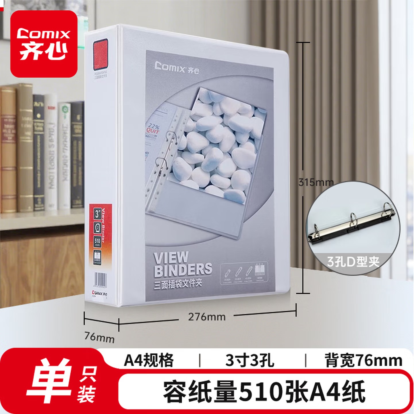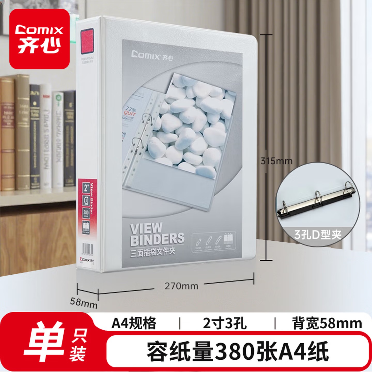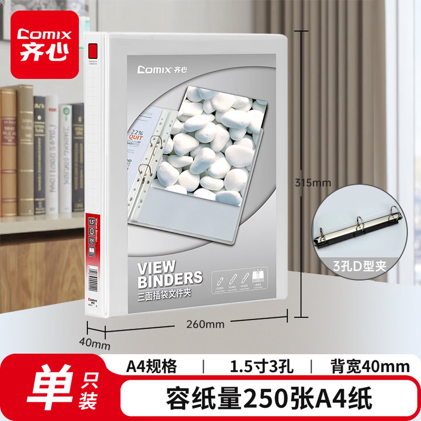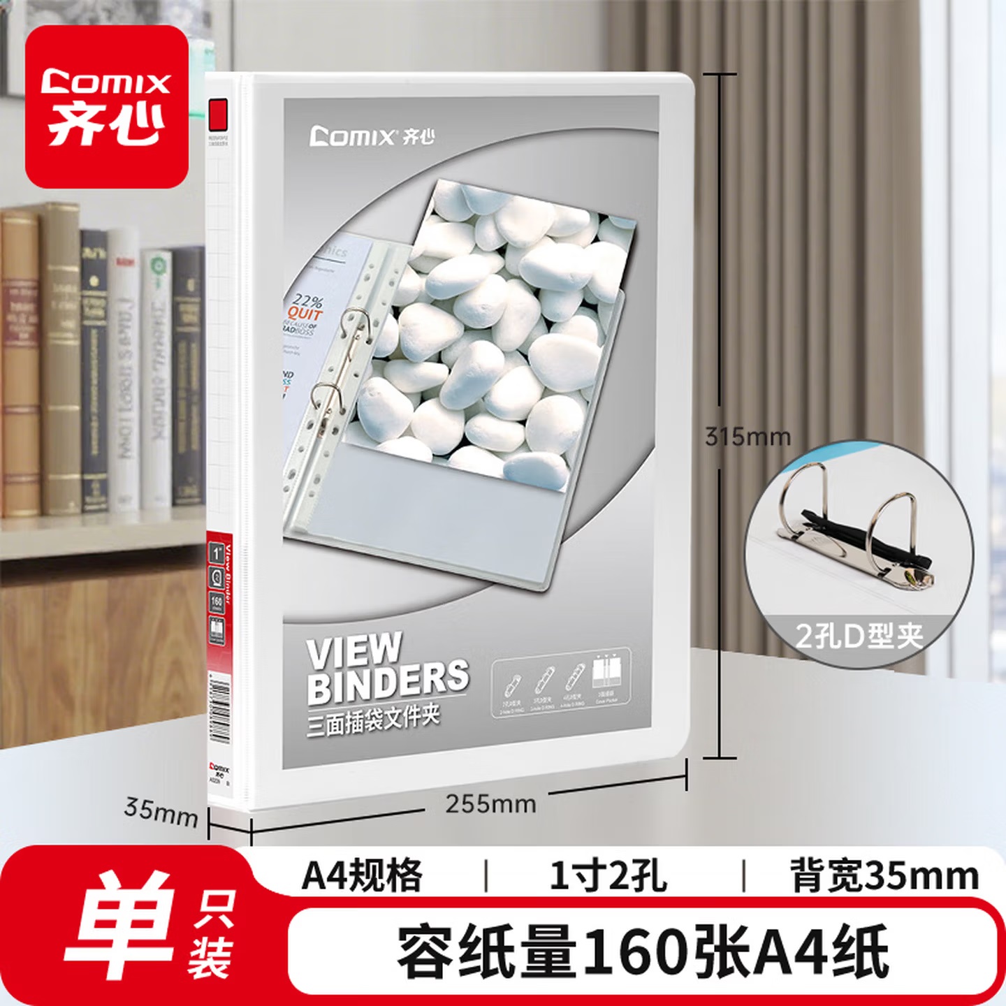 齐心 A206N 两孔 快劳文件夹 3.0寸 A4 黑色