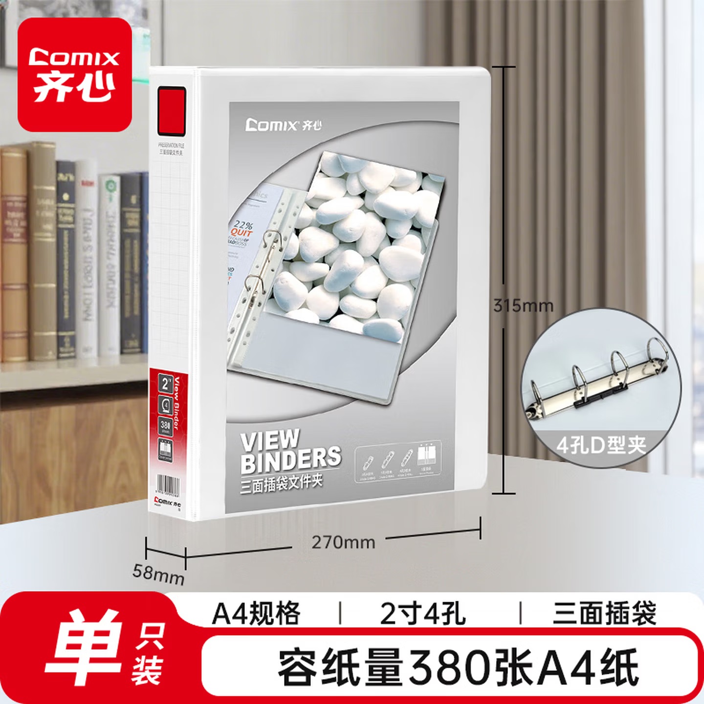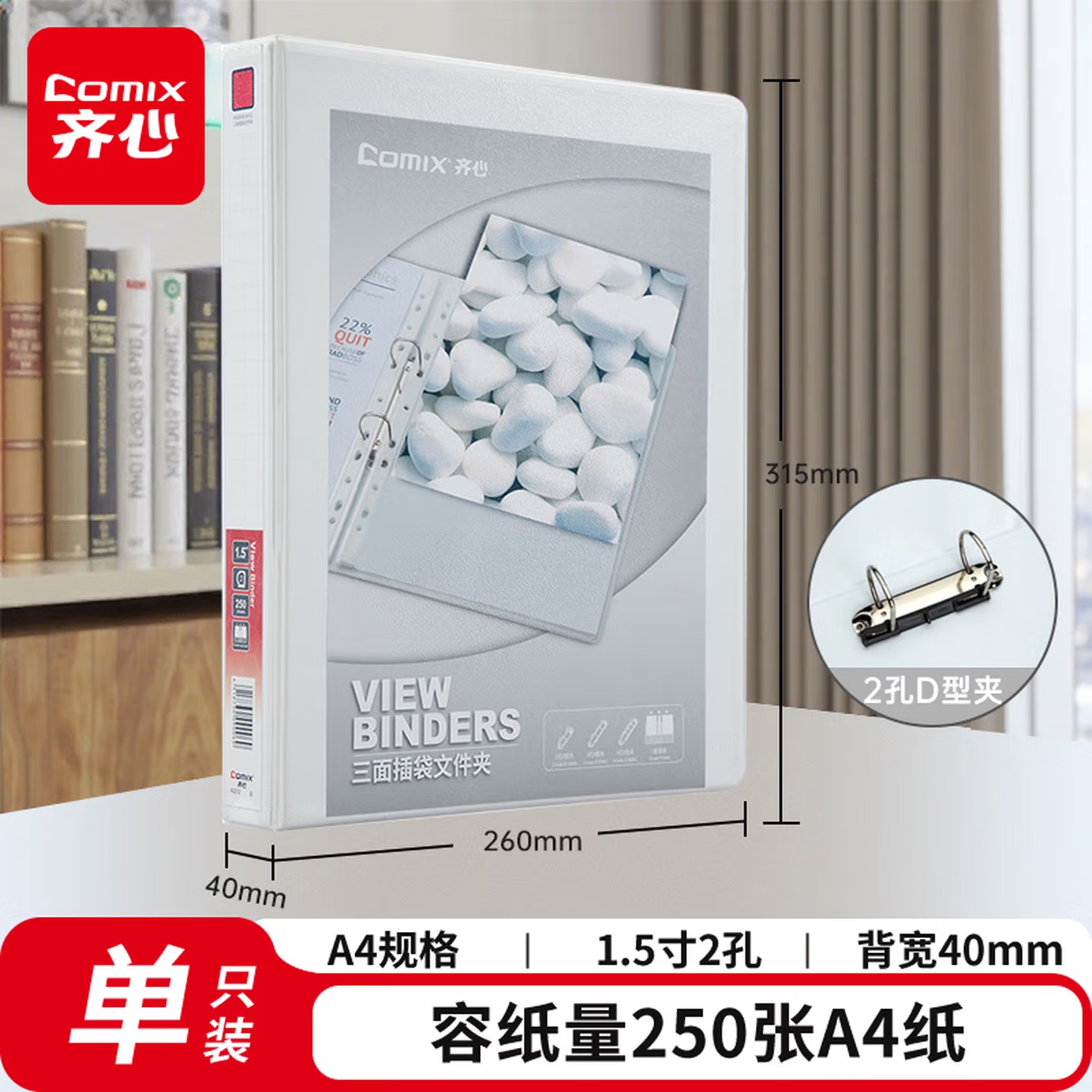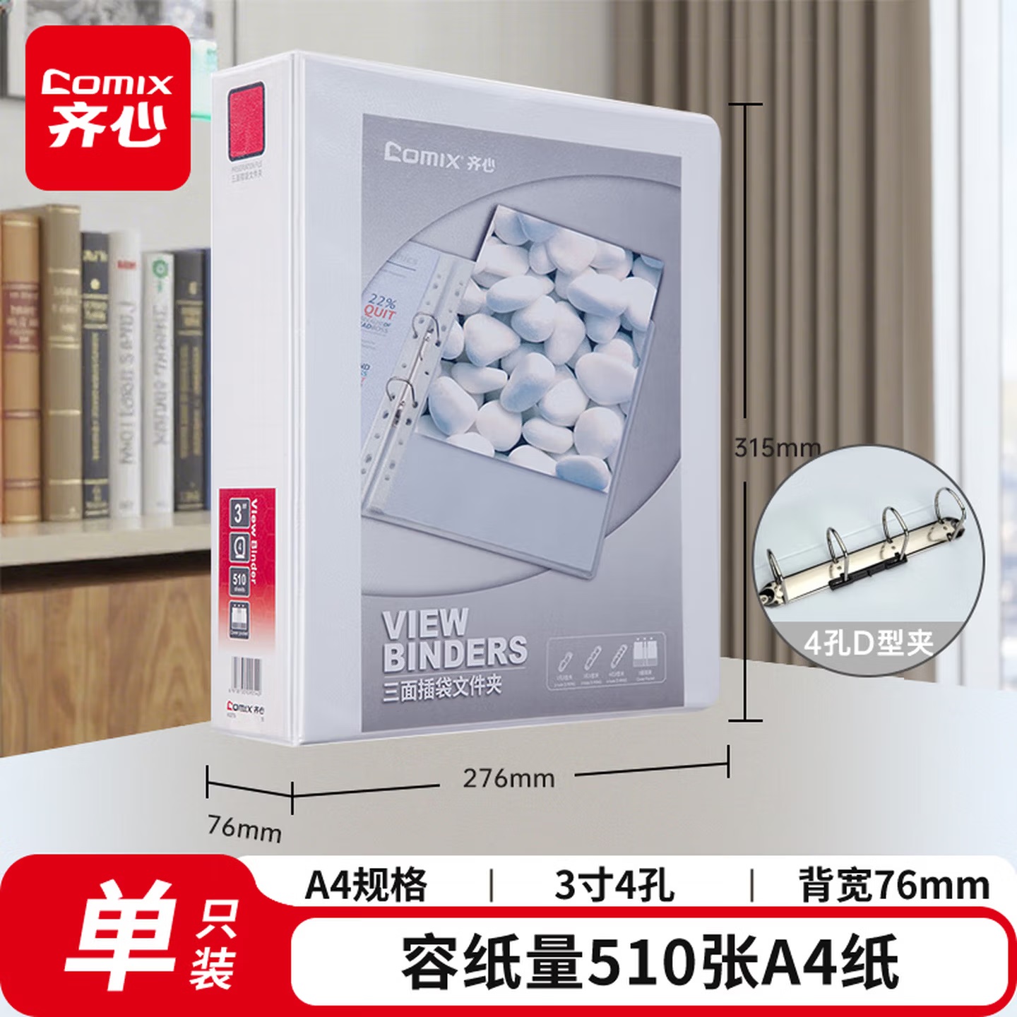 齐心 A206N 两孔 快劳文件夹 3.0寸 A4 黑色