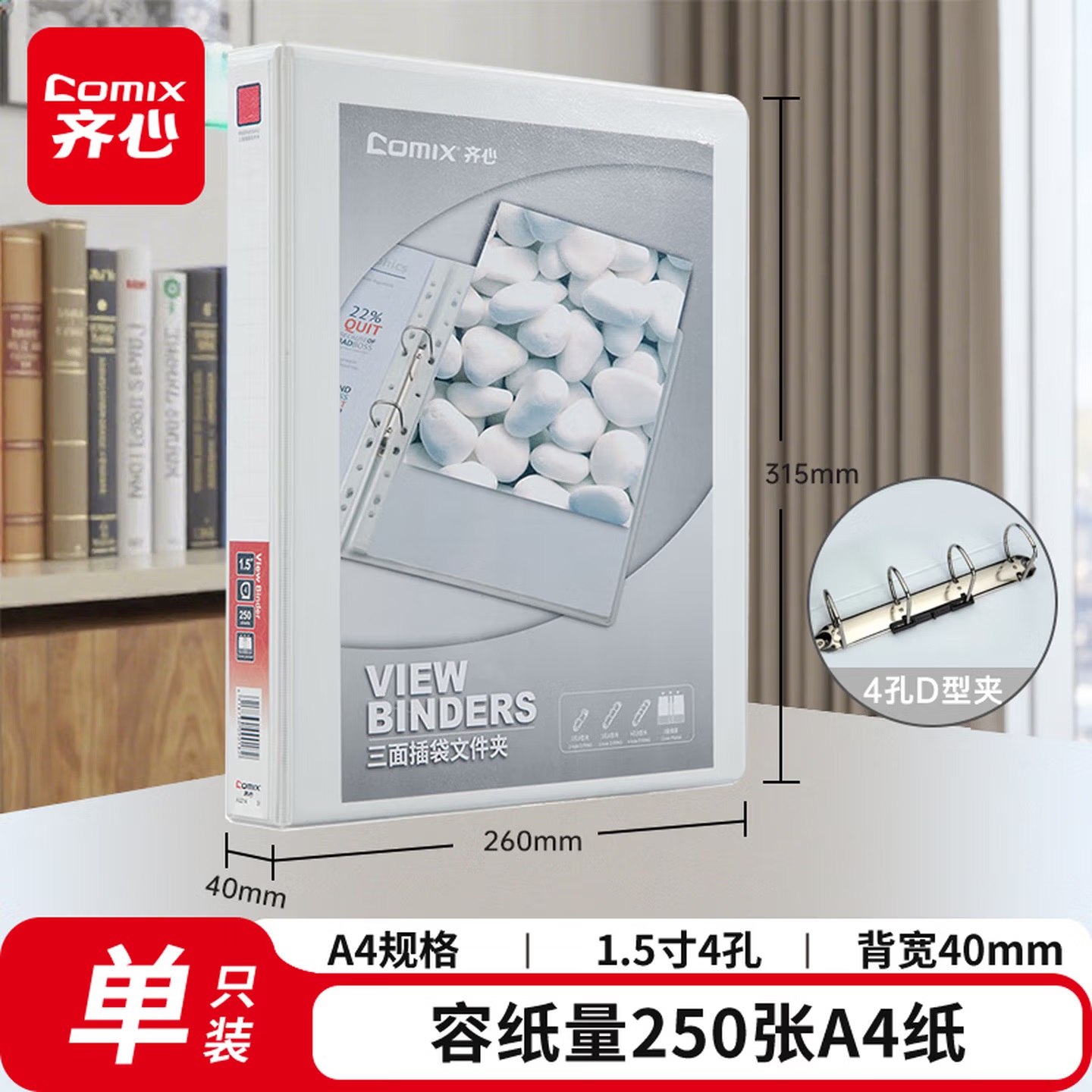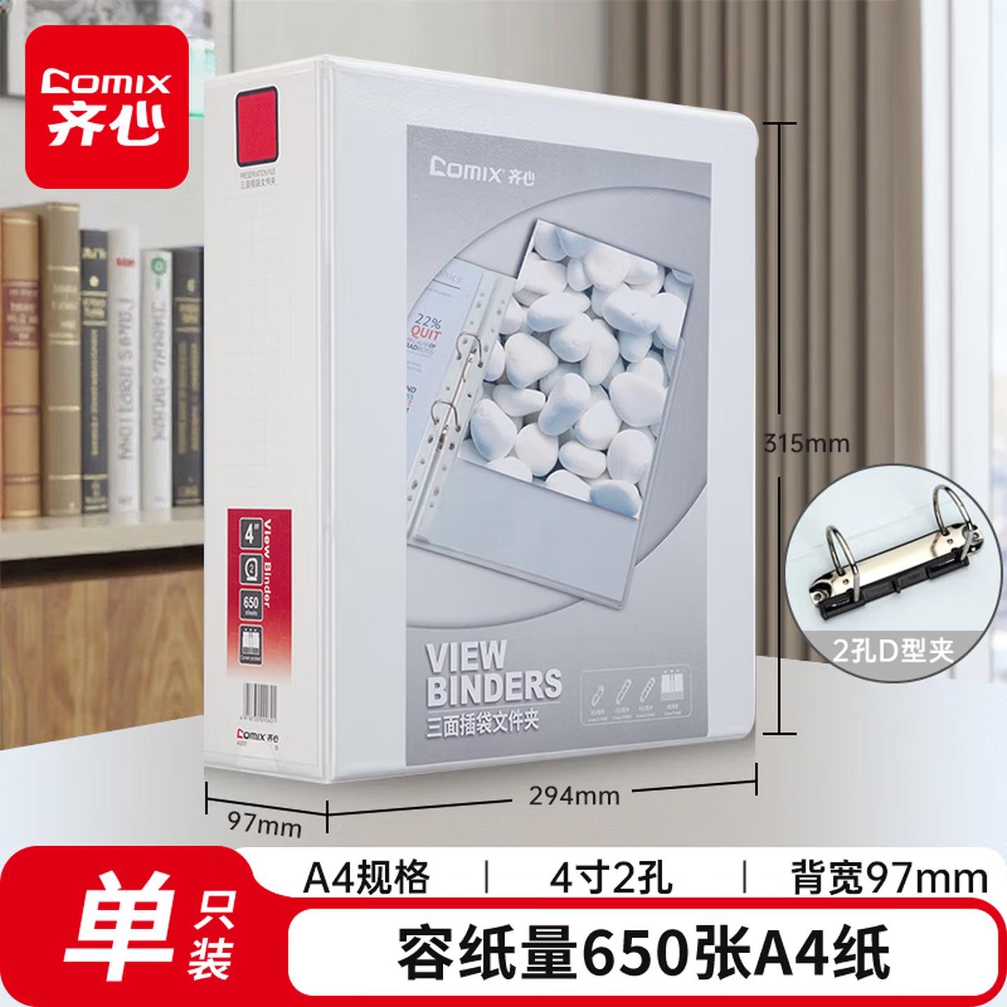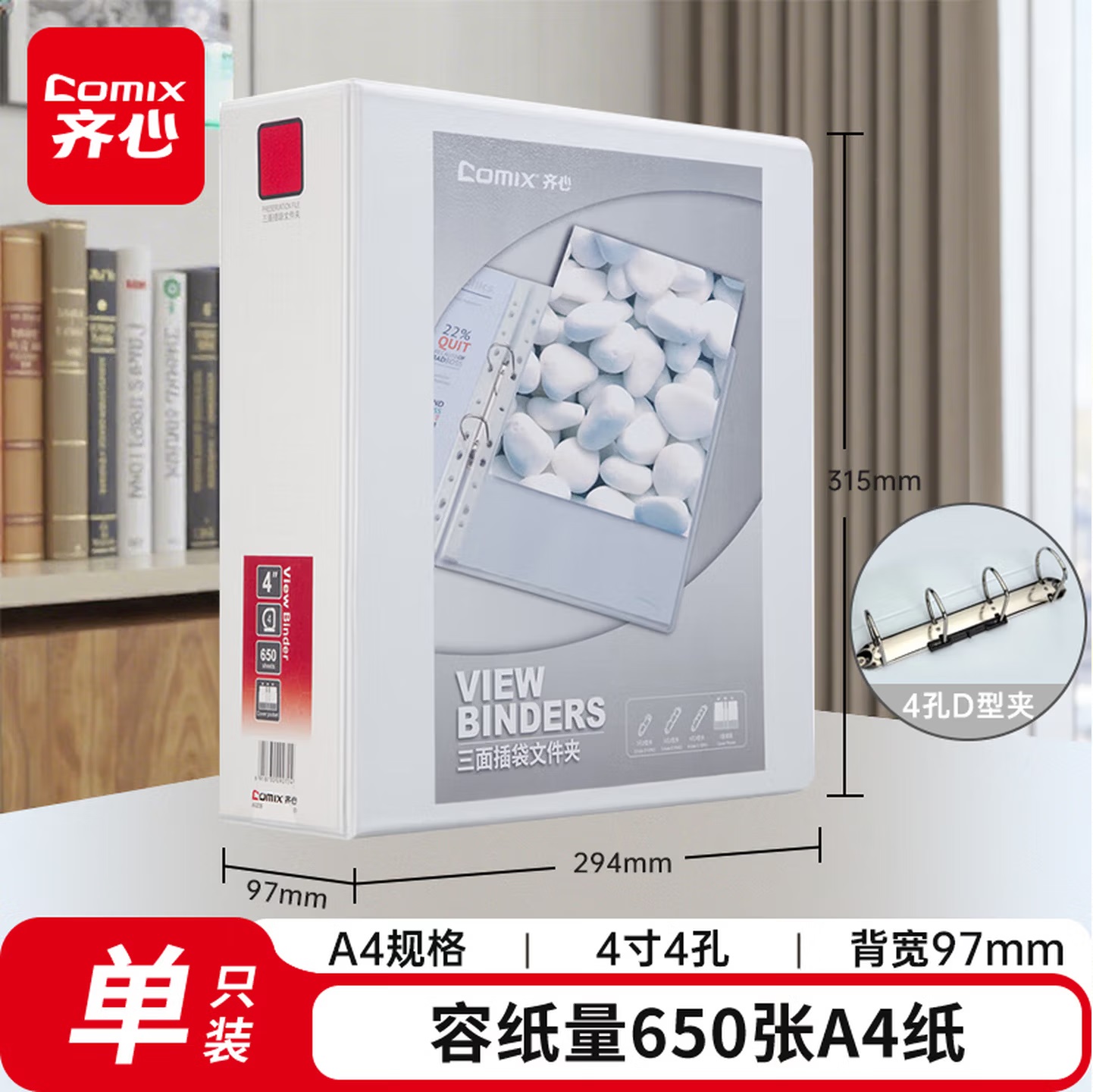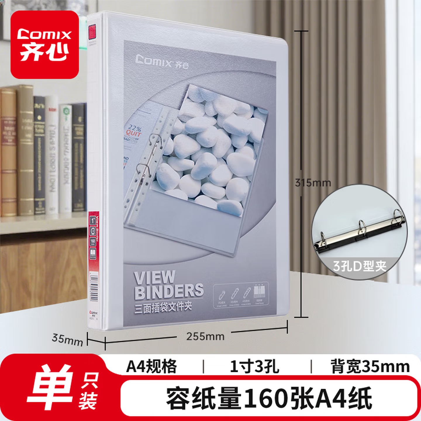 齐心 A206N 两孔 快劳文件夹 3.0寸 A4 黑色