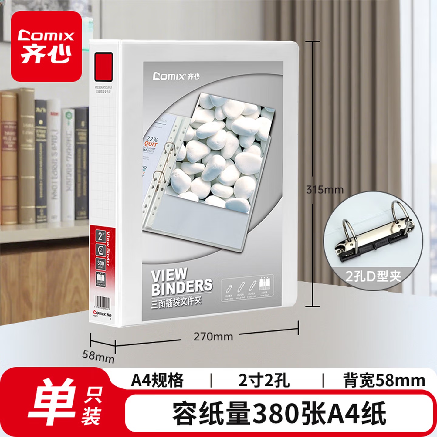 齐心 A205N 两孔 快劳文件夹 2.0寸 A4 黑色