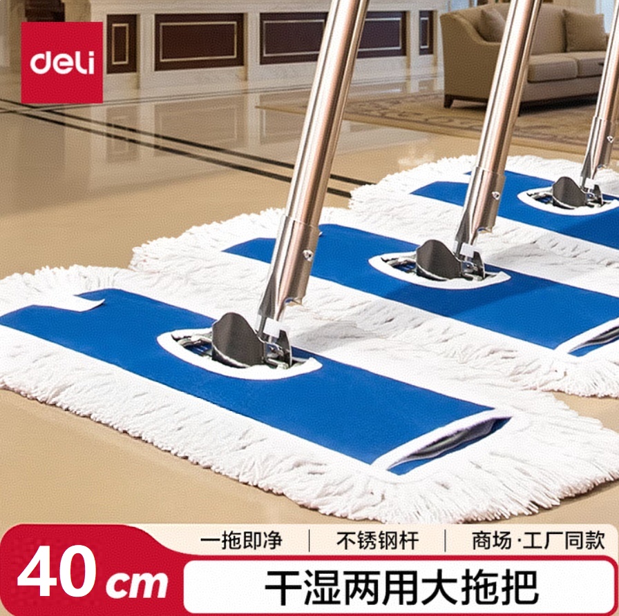 得力LQ140滚压式 金属杆 吸水海绵拖 拖布宽38cm