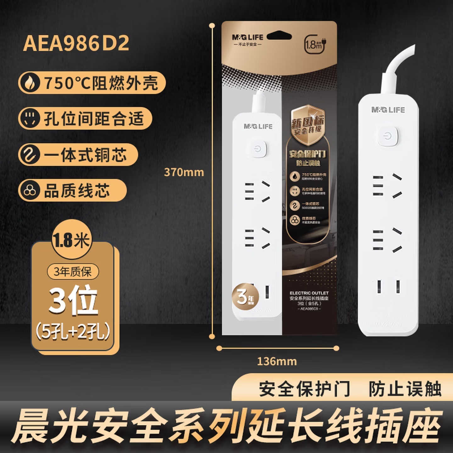 齐心PCP-W315新国标 三位插座 1.5米 2500W 10A