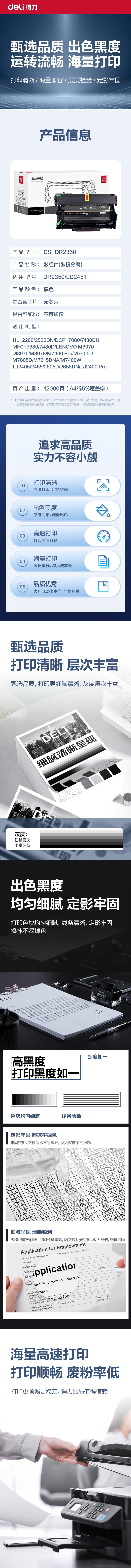 • 商品名称:得力 DS-DR2350 长寿命 成像鼓 适用兄弟DCP-7080/HL-2260/MFC7380系列