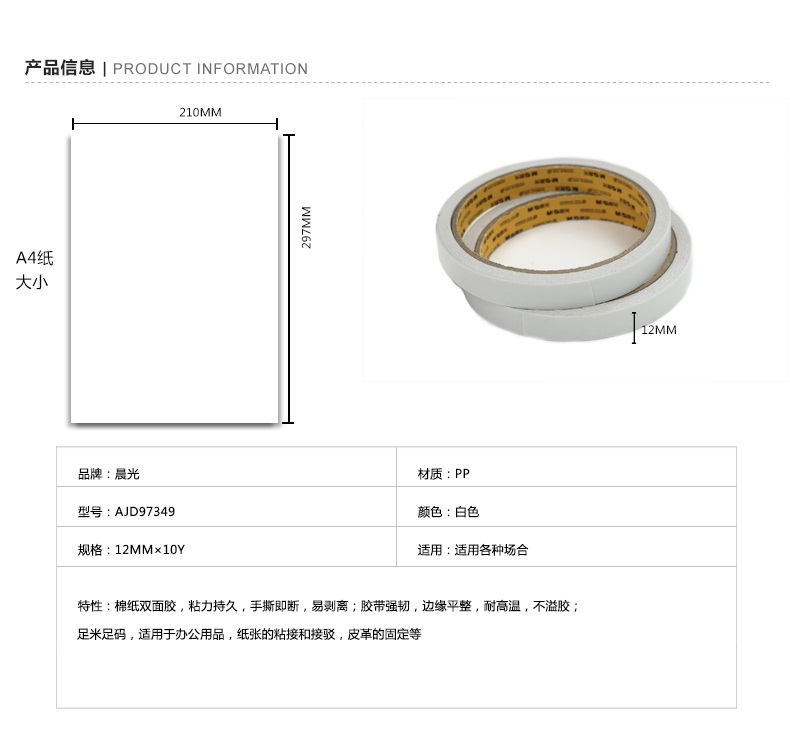 • 商品名称:晨光 12mm×10米 超粘性 棉纸双面胶 AJD97349 2个装