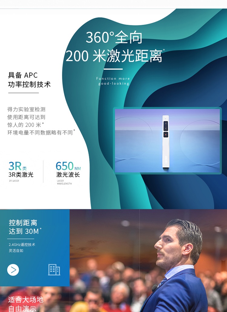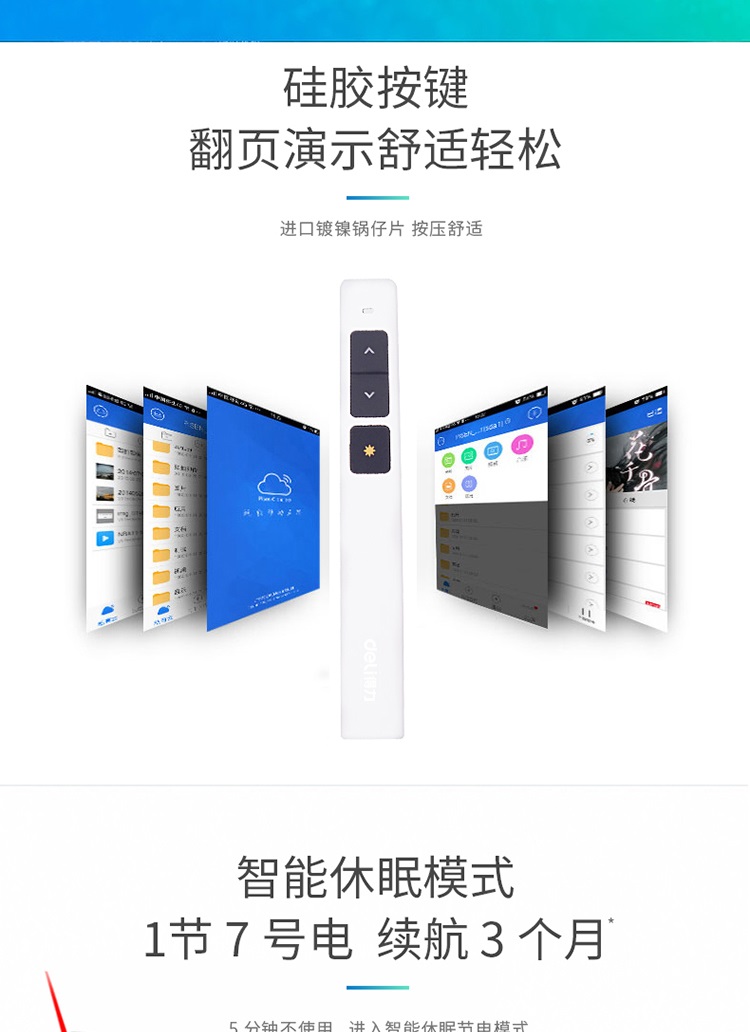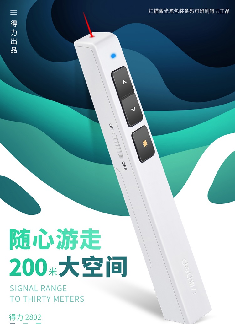 • 商品名称:得力 2802 PPT翻页激光笔 红色激光 白色 安装7号电池