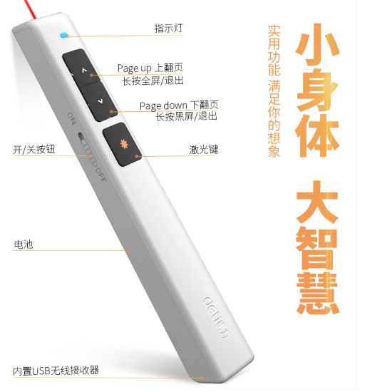 得力 2802 PPT翻页激光笔 红色激光 白色 安装7号电池