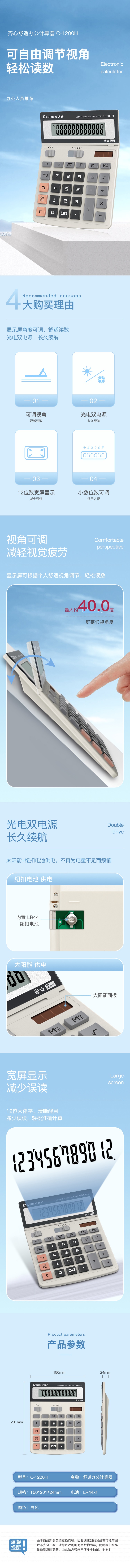 • 商品名称:齐心C-1200H 双电源 大宽屏 视角可调 大台 计算器 12位