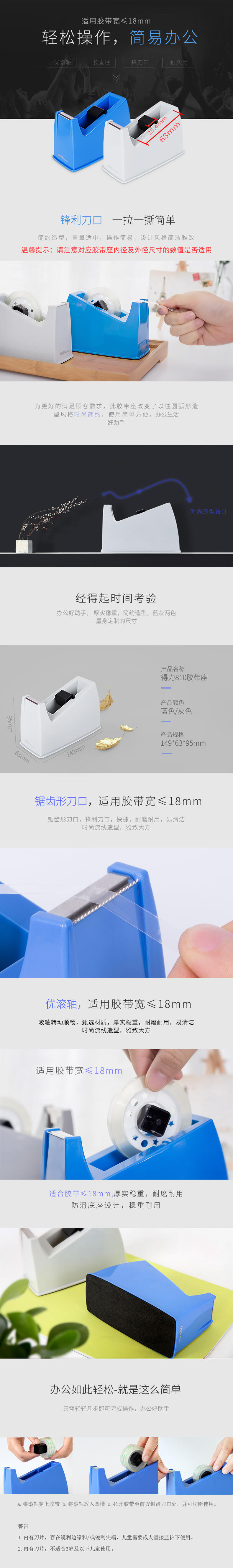 • 商品名称:得力 NO.810 中号 经典型胶带座 灰色 适用:胶带宽度 ≤18mm