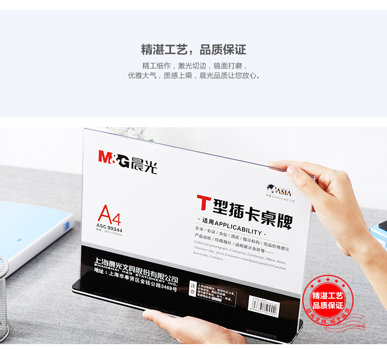 • 商品名称:晨光 ASC99344 横式 抽拉式桌牌 A4 297mm×210mm T型