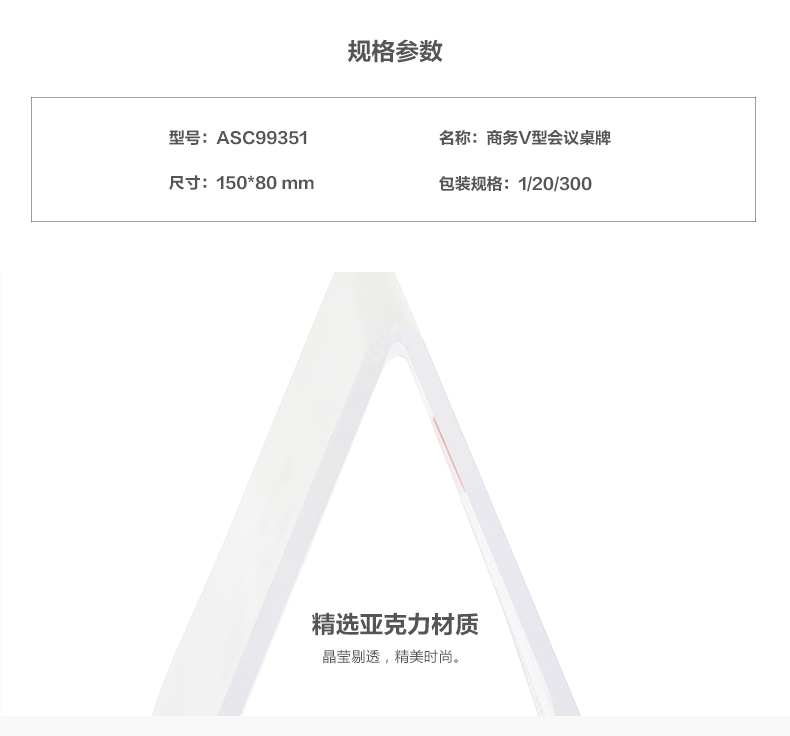 • 商品名称:晨光 ASC99351 亚克力 三角座位牌 150mm×80mm