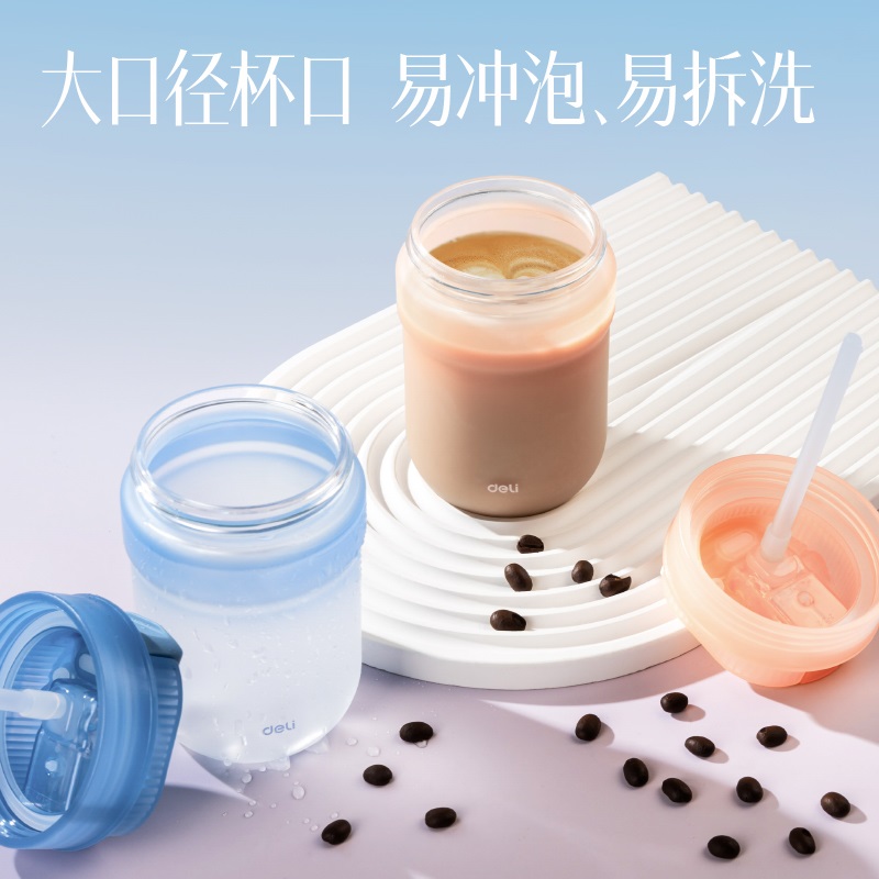 • 商品名称:得力 LL312 旋盖双饮 薄雾流光 咖啡杯 420ml 肉桂杏粉