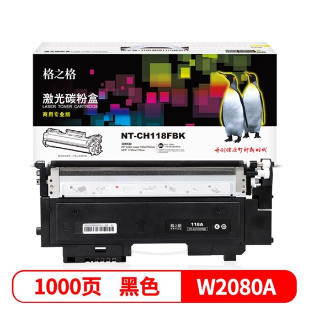 • 商品名称:格之格 NT-CH118FBK 黑色粉盒 带芯片 (适用于HP Color Laser 150a/150nw/MFP 179fnw/178nw)