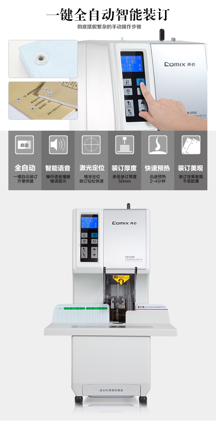 • 商品名称:齐心CM-5088全自动 财务凭证 装订机 最大装订厚度:500张