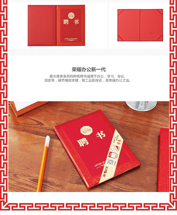 晨光 ASC99319 特种纸聘书 12K 中号 内芯尺寸:209mm×293mm A4
