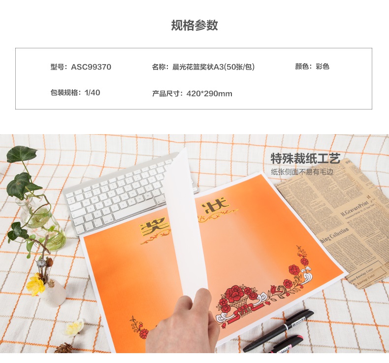 • 商品名称:晨光 ASC99370 优质双胶纸奖状 10张装 A3 尺寸:290mm×420mm