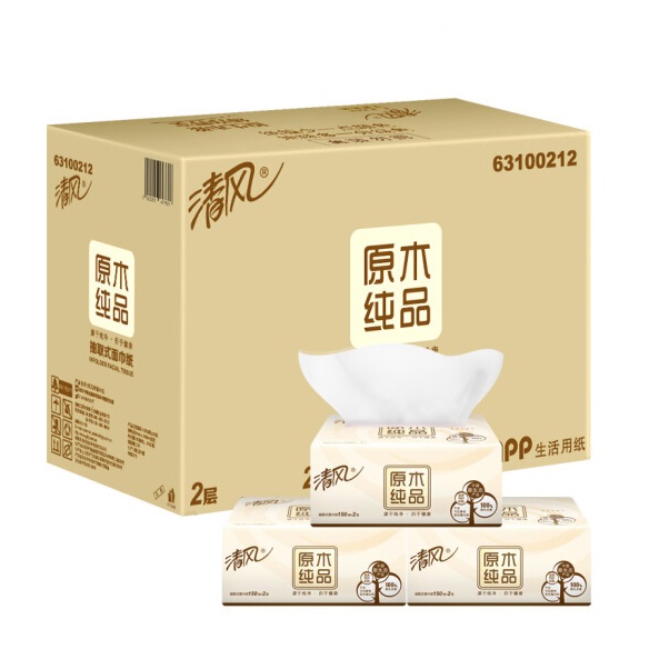 • 商品名称:清风150抽二层原木纯品软抽纸BR38A6 10包装 136mm×206mm 小规格