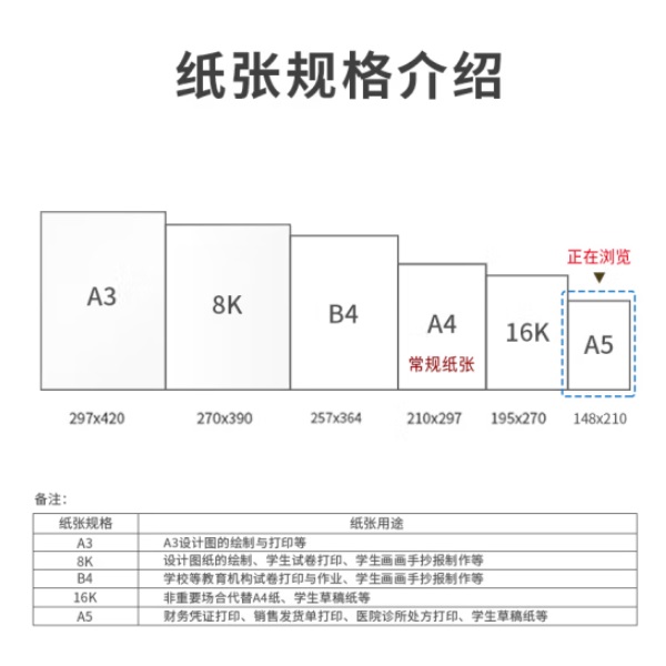• 商品名称:晨光美印 A5 多功能 全木桨复印纸70g 500张×1包 尺寸 148mm×210mm