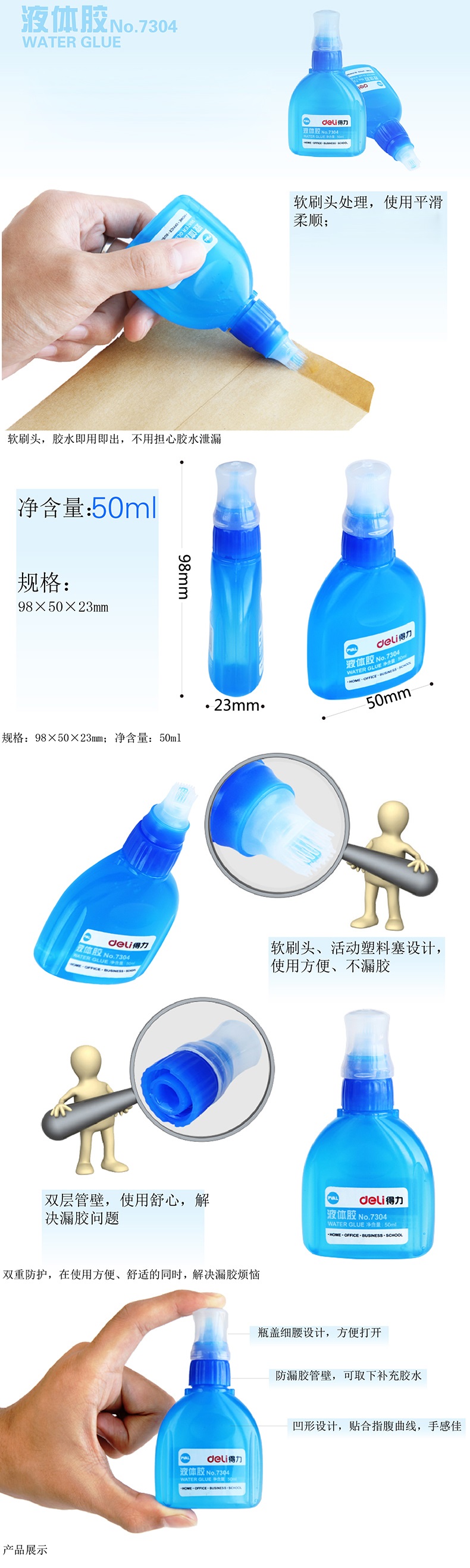 • 商品名称:得力 7304 中号 软刷头 液体胶水 50ml
