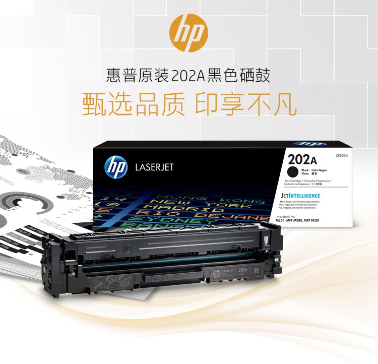 • 商品名称:惠普CF500A 202A黑色硒鼓(适用于M254/M280/M281)