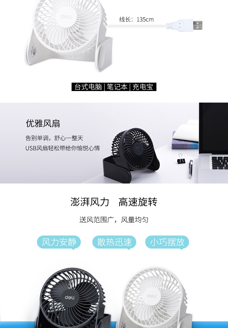 • 商品名称:得力 3686 桌面型 5寸 迷你风扇 白色 USB 静音 两档 无刷电机