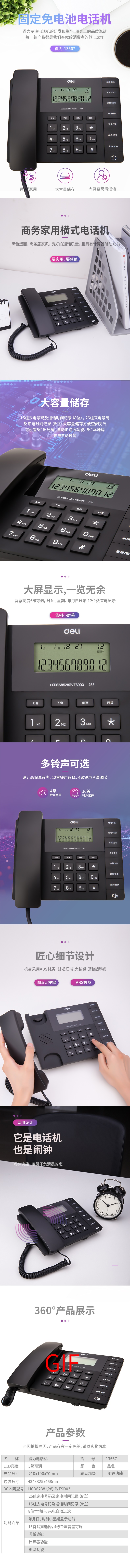 • 商品名称:得力 13567 时尚商务 来电显示电话 黑色