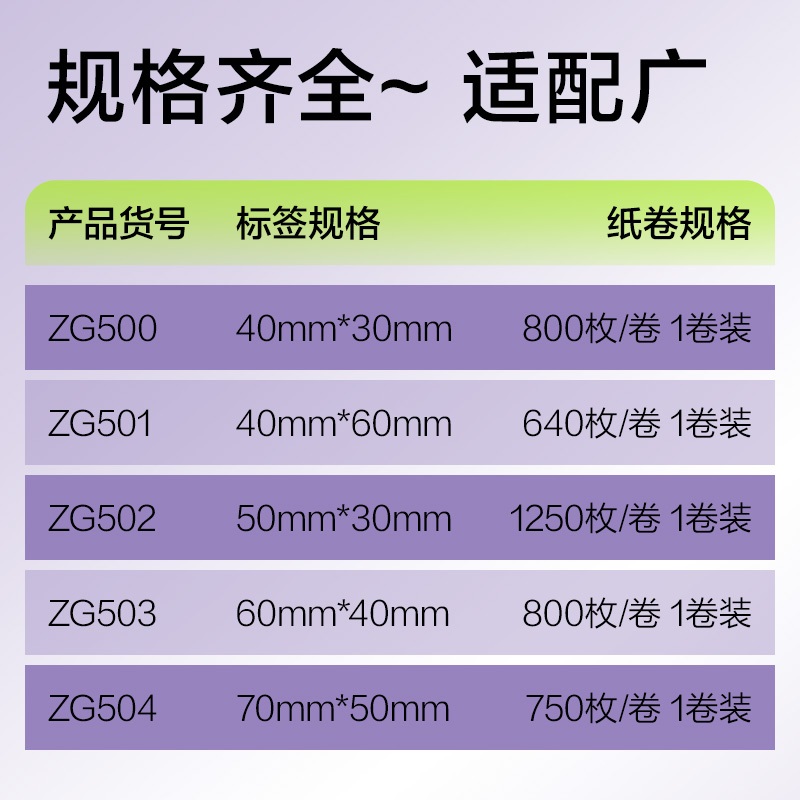 • 商品名称:得力 ZG500 热敏 不干胶 标签打印纸 40mm×30mm 800张 绿色