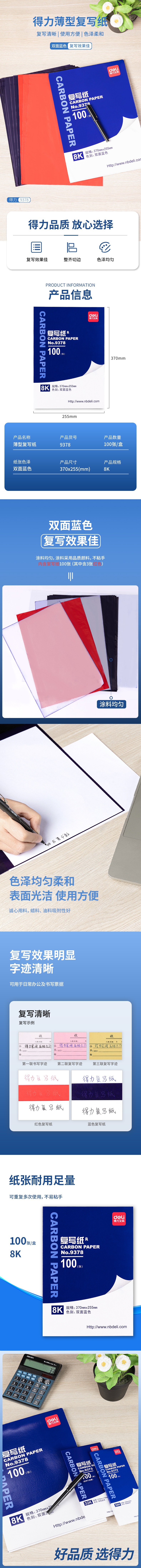 • 商品名称:得力 8K 薄型双面 复写纸 9378 370mm×255mm