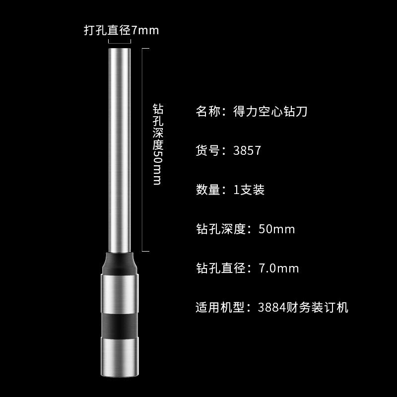 • 商品名称:得力 3857 财务凭证 装订机 空心刀头 Φ7.0mm×50mm
