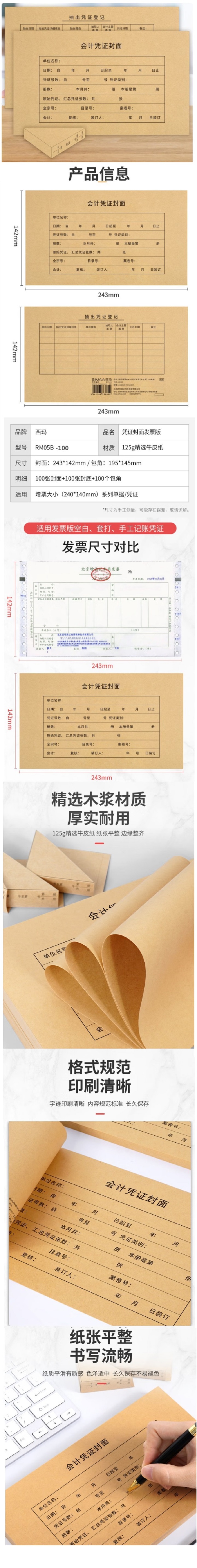 • 商品名称:西玛 RM-05B 发票版 会计凭证封面 封面+封底+包角 100套装