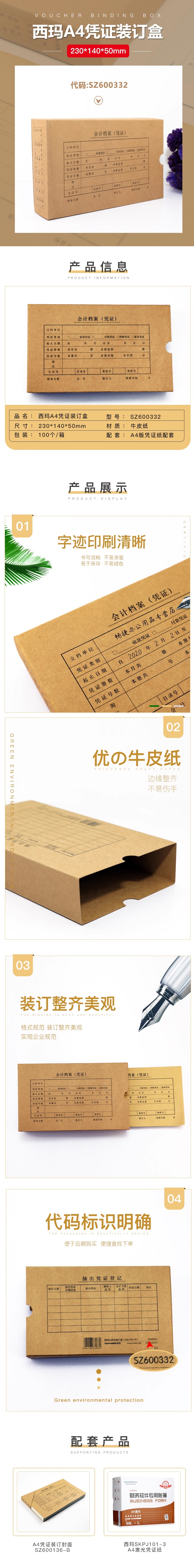• 商品名称:西玛 SZ600332 会计凭证装订盒 横版 单个装 230mm×140mm×50mm
