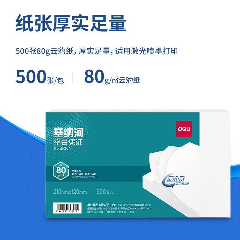 • 商品名称:塞纳河 BR104 通用标准版 空白凭证打印纸 500张装 210mm×120mm