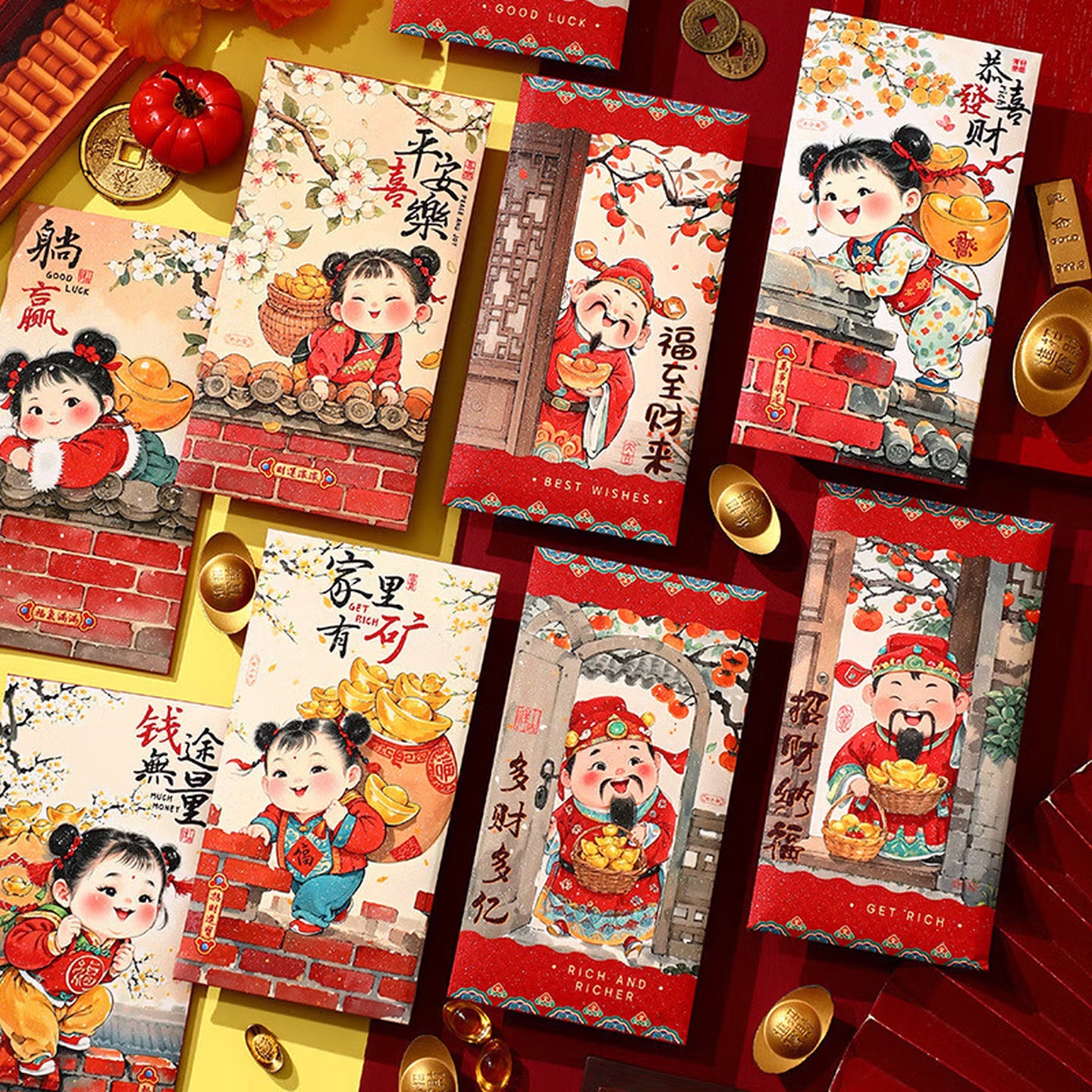 泓喆 B69 福到我家 新款国潮彩印红包 6个装 85mm×165mm