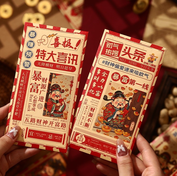 会议展示 年会庆典 泓喆 C31 财神日报 新款国潮彩印红包 6个装 85mm×165mm...