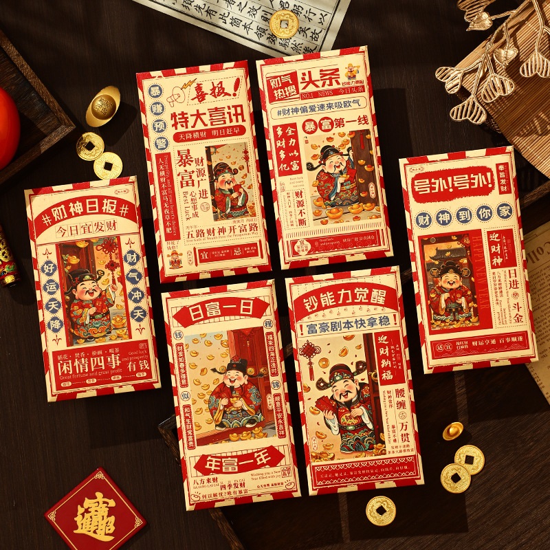 泓喆 C31 财神日报 新款国潮彩印红包 6个装 85mm×165mm