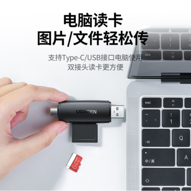 • 商品名称:绿联 80191 二合一 多功能 高速读卡器 USB3.0 + Type-C3.0