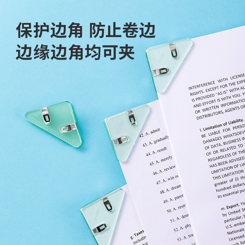 日常文具 票夹 得力 QJ8530 多功能 直角边角夹 透绿 4只装...