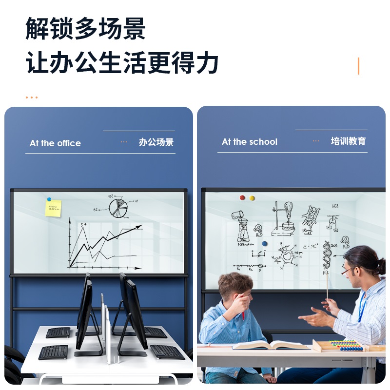 会议展示 白板 得力 90cm×180cm 磁性玻璃白板含架 8739 含安装调试...