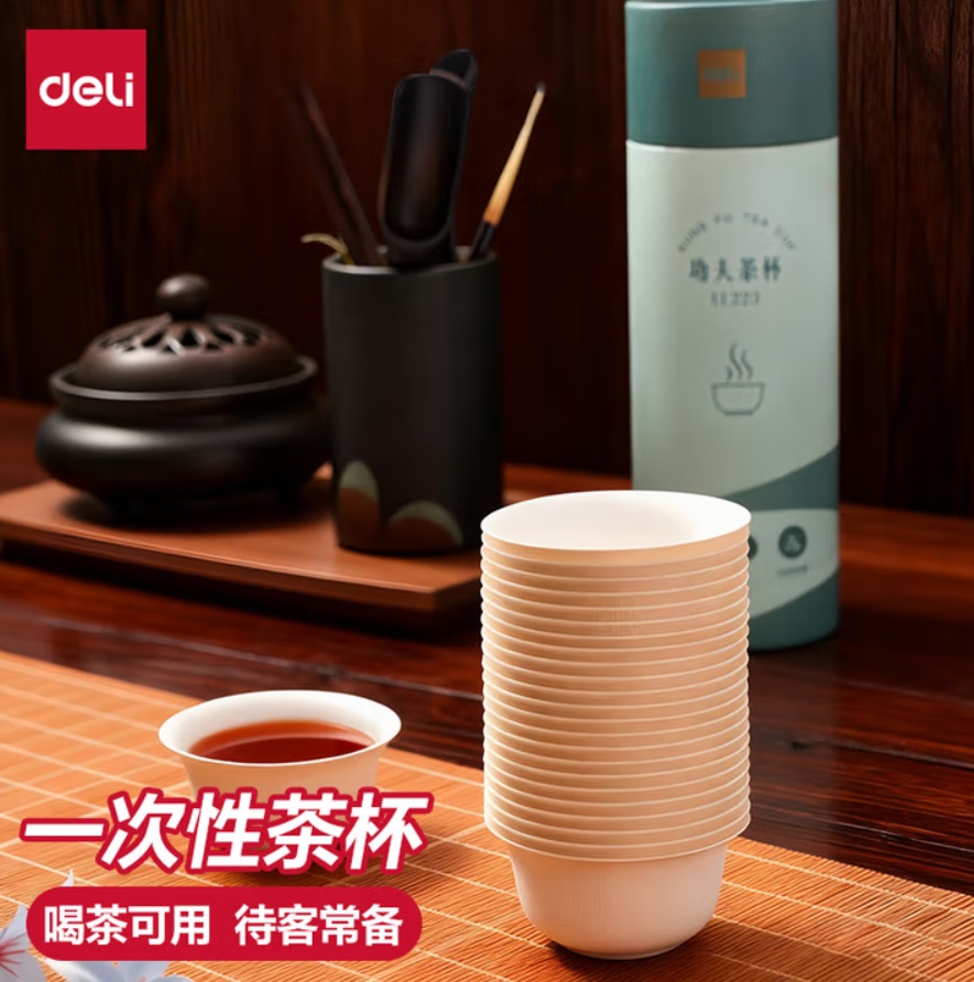 办公生活 纸杯/保温壶 得力LL223耐高温 一次性加厚功夫茶杯 50只装...