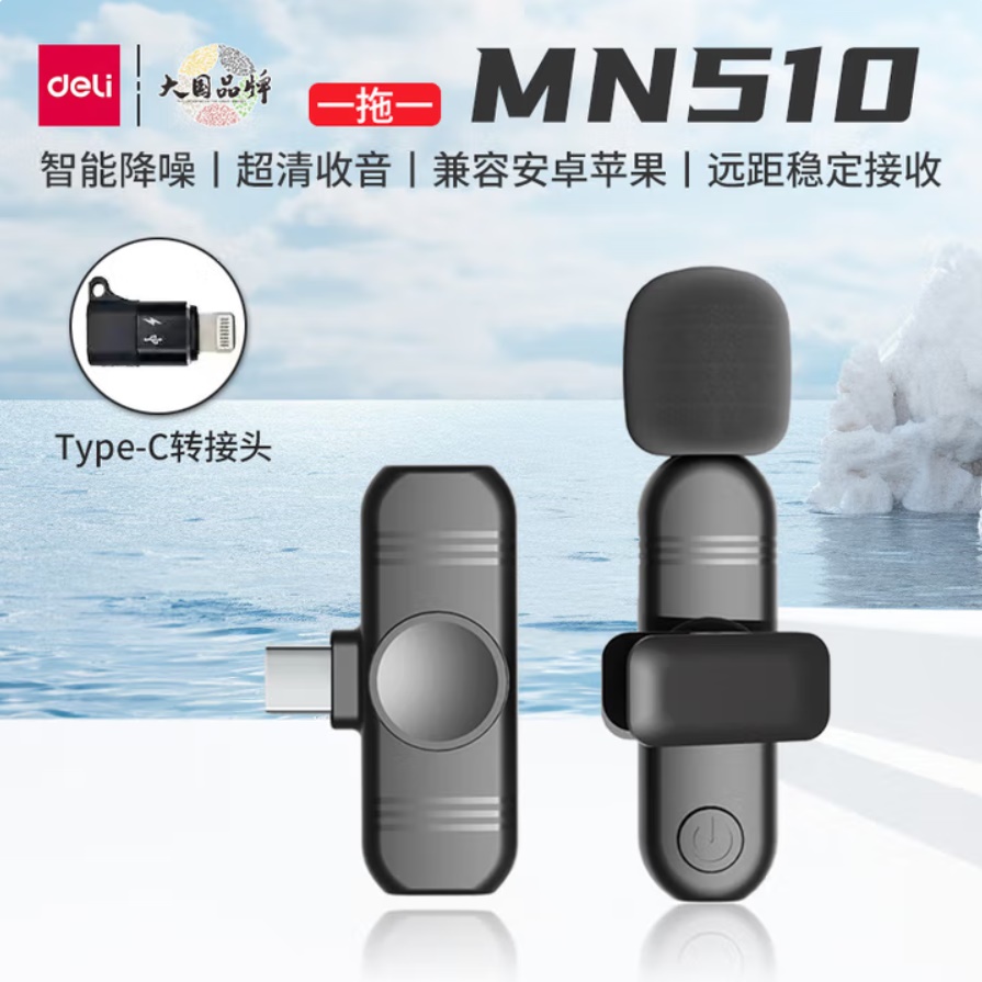 • 商品名称:得力 MN510 智能降噪 无线领夹麦克风 一拖一