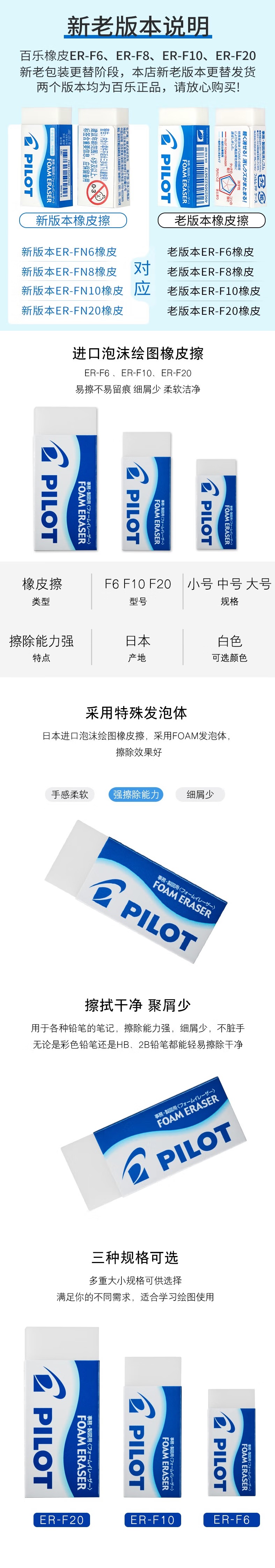 • 商品名称:百乐 ER-F10 无碎屑橡皮 中号