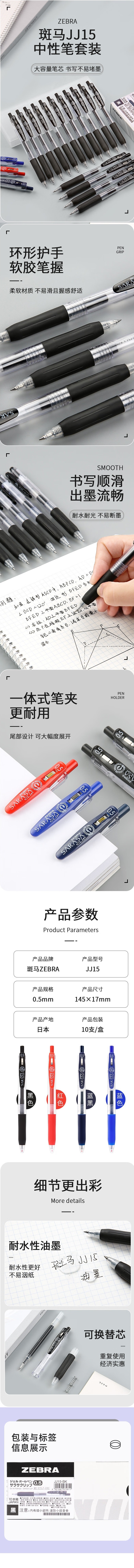 • 商品名称:斑马 JJ15-BK 按动式 速干中性笔 0.5mm 黑色
