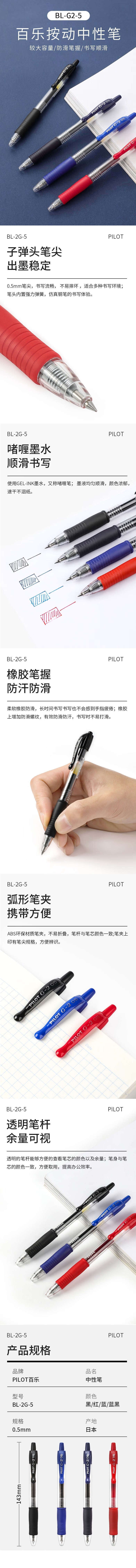 • 商品名称:百乐 BL-G2-5 按动式 办公中性笔 0.5mm 黑色