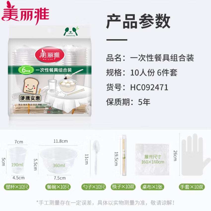 • 商品名称:美丽雅 HC092471 一次性餐具组合 10人装